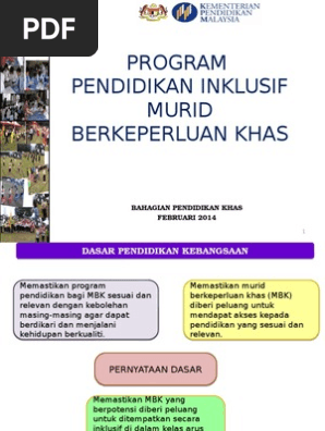 Kategori murid berkeperluan khas mbk merujuk kepada peraturan pendidikan pendidikan khas 2013. Merujuk kepada peraturan peraturan pendidikan pendidikan khas 2013 murid berkeperluan pendidikan khas ertinya kanak kanak yang diperakukan oleh pengamal perubatan ahli optik ahli audiologi atau ahli psikologi mengikut mana mana yang berkenaan sama ada dalam perkhidmatan kerajaan atau tidak sebagai murid yang mempunyai ketidakupayaan penglihatan ketidakupayaan pendengaran ketidakupayaan. Merujuk kepada peraturan peraturan pendidikan pendidikan khas 2013 murid berkeperluan pendidikan khas ertinya kanak kanak yang diperakukan oleh pengamal perubatan ahli optik ahli audiologi atau ahli psikologi mengikut mana mana yang berkenaan sama ada dalam perkhidmatan kerajaan atau tidak sebagai murid. Peraturan peraturan pendidikan pendidikan khas 2013.