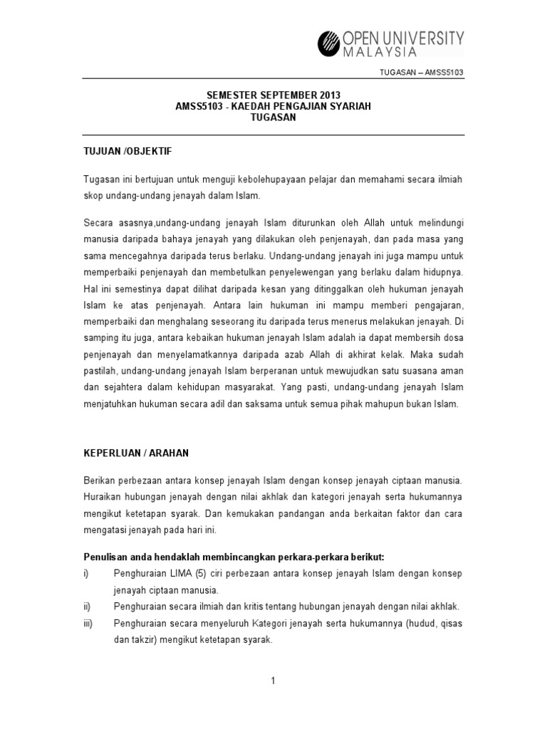 Semester September 2013 Amss5103 Kaedah Pengajian Syariah Tugasan