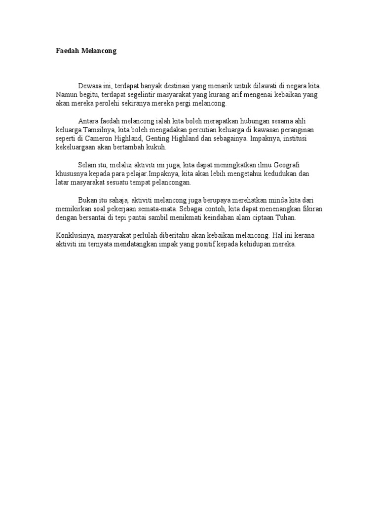Contoh Contoh Karangan Sekolah Menengah Karangan Spm Kebaikan Kebaikan Melancong