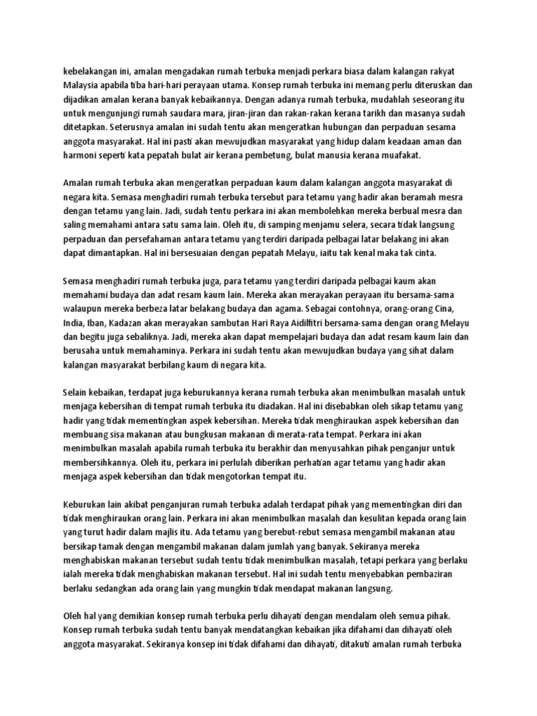 Kepentingan Mengadakan Rumah Terbuka Karangan Spm