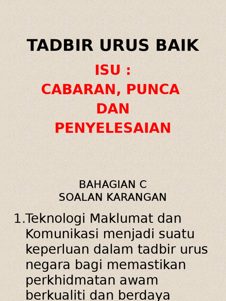Soalan Esei Pengajian Am Penggal 1 Tabdir Urus Yang Baik