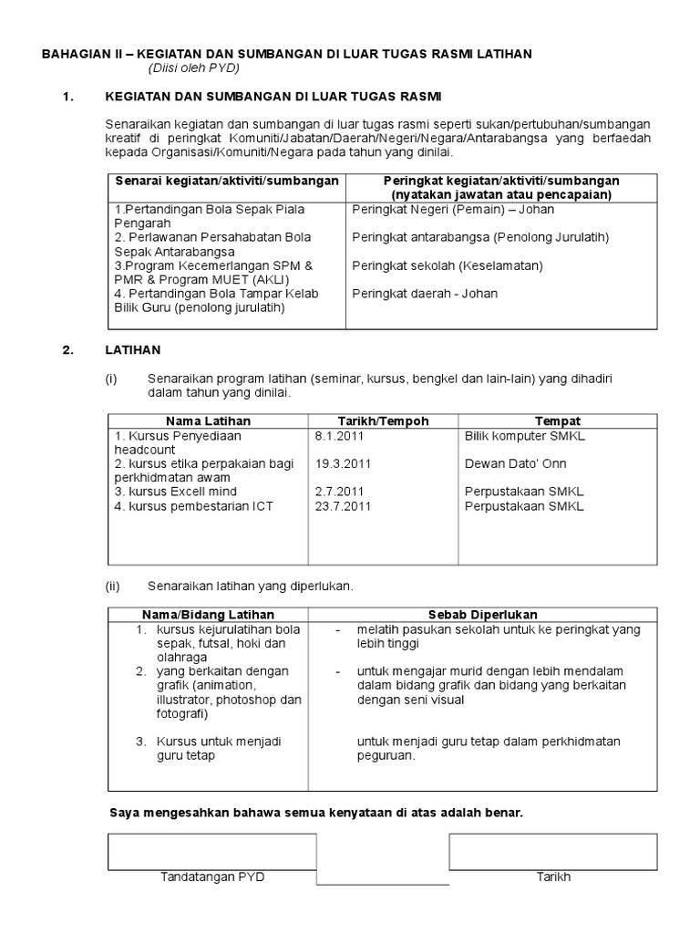 Bahagian Ii Kegiatan Dan Sumbangan Di Luar Tugas Rasmi Latihan Haziq Doc