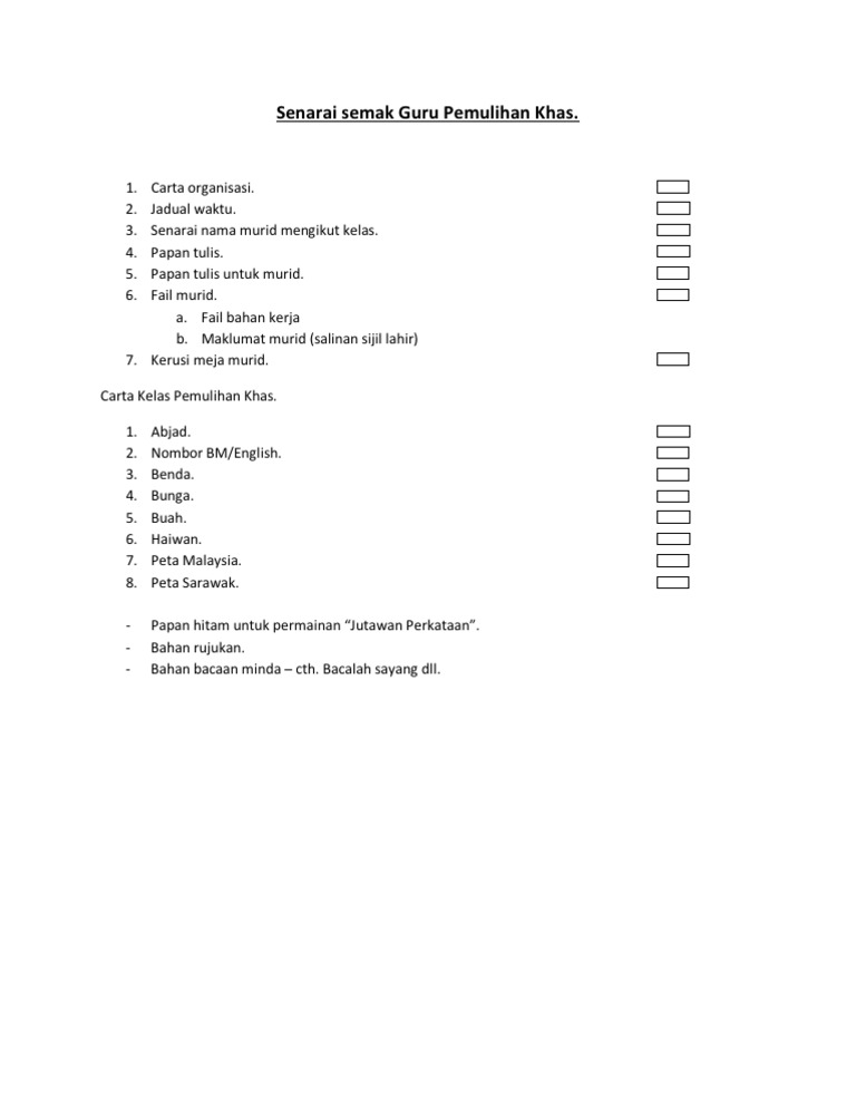 Senarai Semak Guru Pemulihan Khas