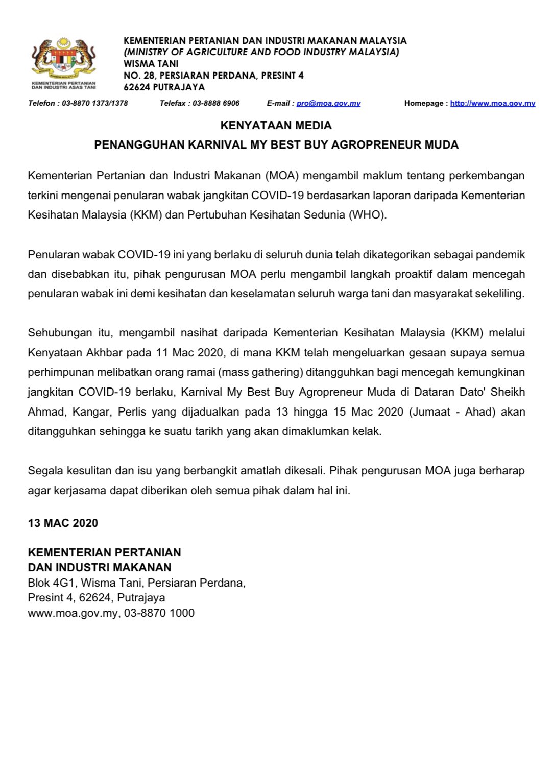 Moa On Twitter Penangguhan Karnival My Best Buy Agropreneur Muda Moa Makanankitamasadepankita