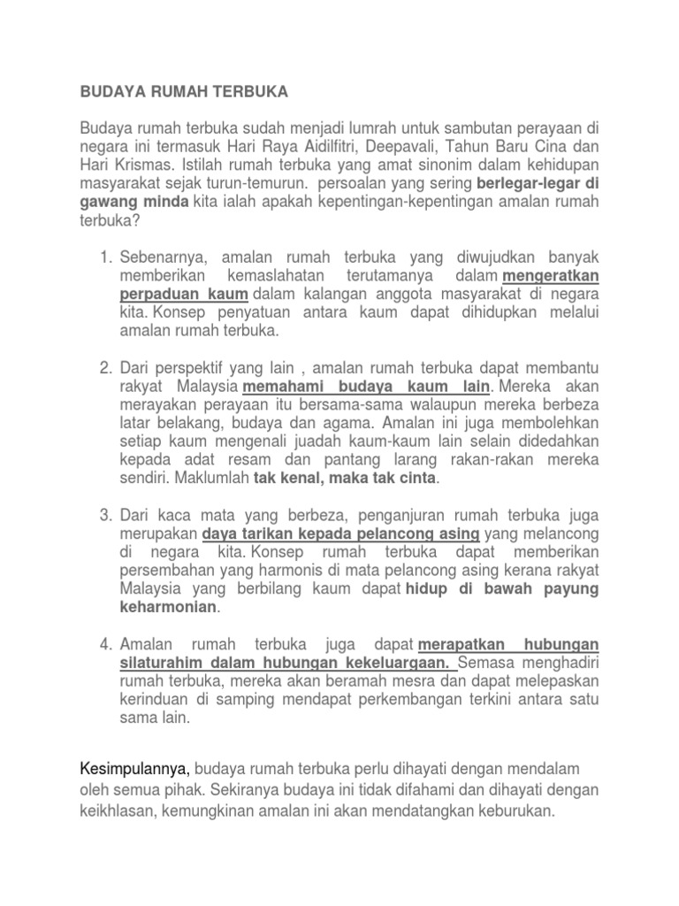 Laman Bahasa Melayu Spm Karangan Kepetingan Rumah Terbuka Di Malaysia