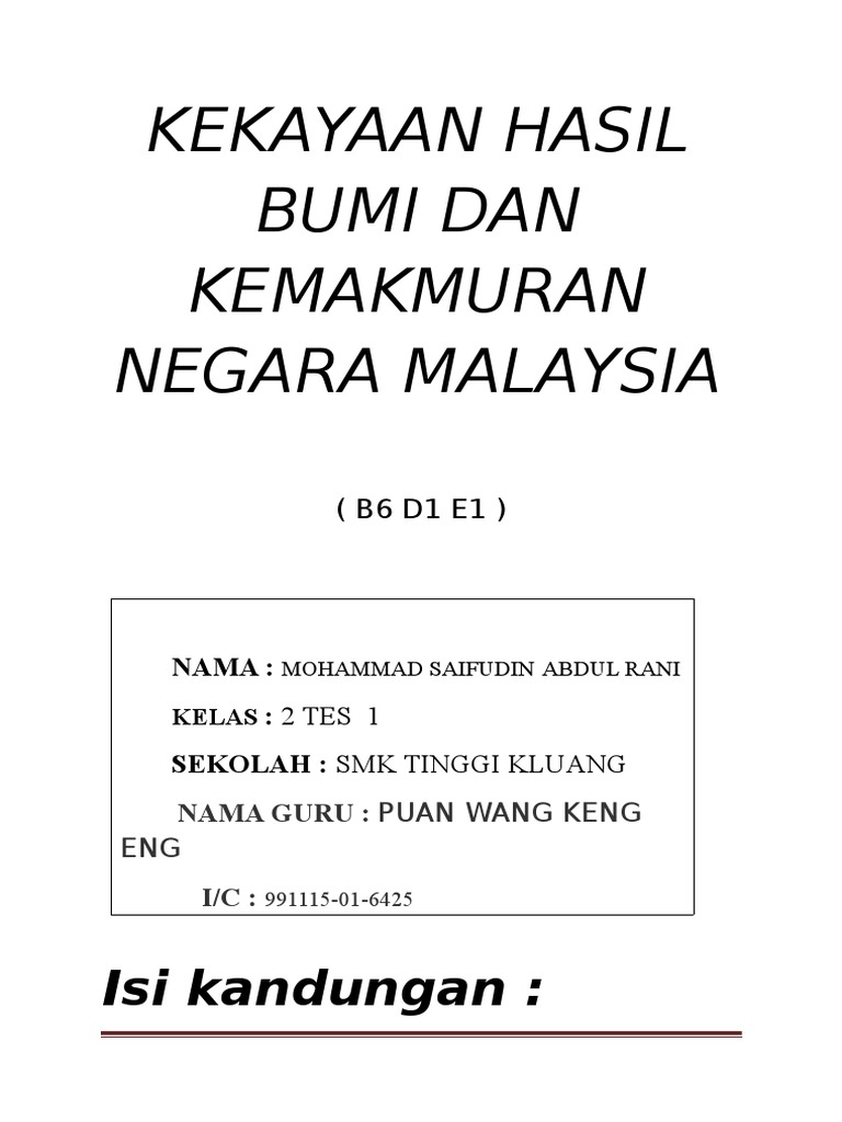 Kekayaan Hasil Bumi Dan Kemakmuran Negara Malaysia