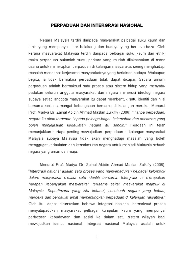 Doc Kepentingan Perpaduan Kaum Zalina Husain Academia Edu