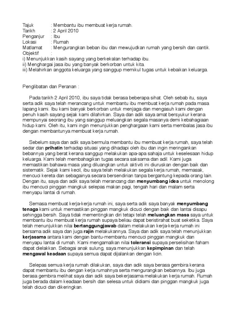 Laporan Membantu Ibu Melaksanakan Kerja Rumahbidang Kekeluargaan Docx