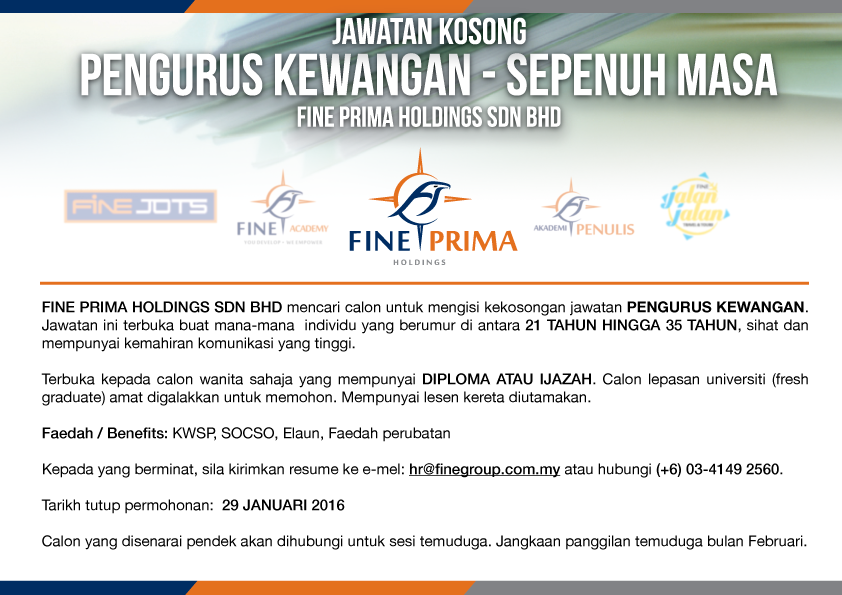 Jawatan Kosong Terkini Sebagai Pengurus Kewangan 29 Februari 2016