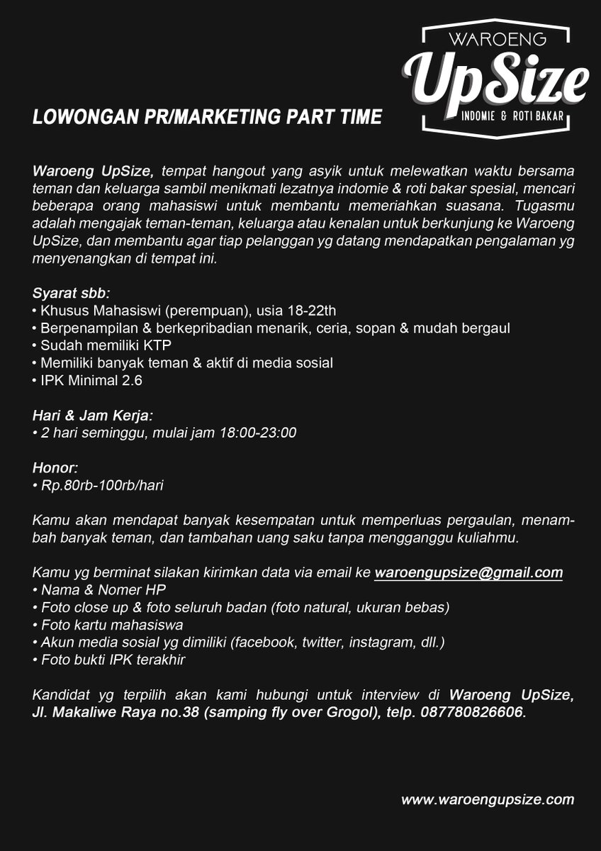 Career Center Usakti On Twitter Lowongan Part Time Waroeng Upsize