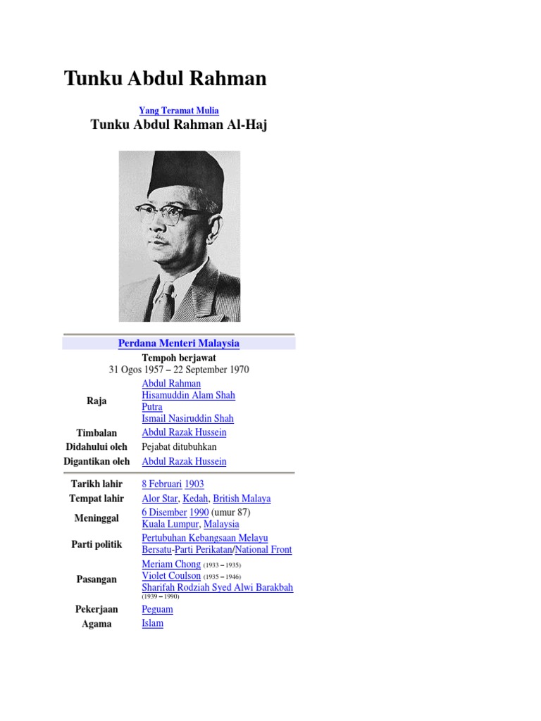 Doc Biodata Tokoh Tunku Abdul Rahman Rozie Zor Academia Edu