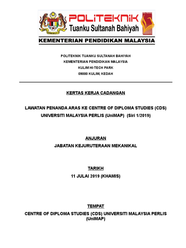 Kertas Kerja Lawatan Penandaaras Ke Unimap Det Dtk 9 4 2019