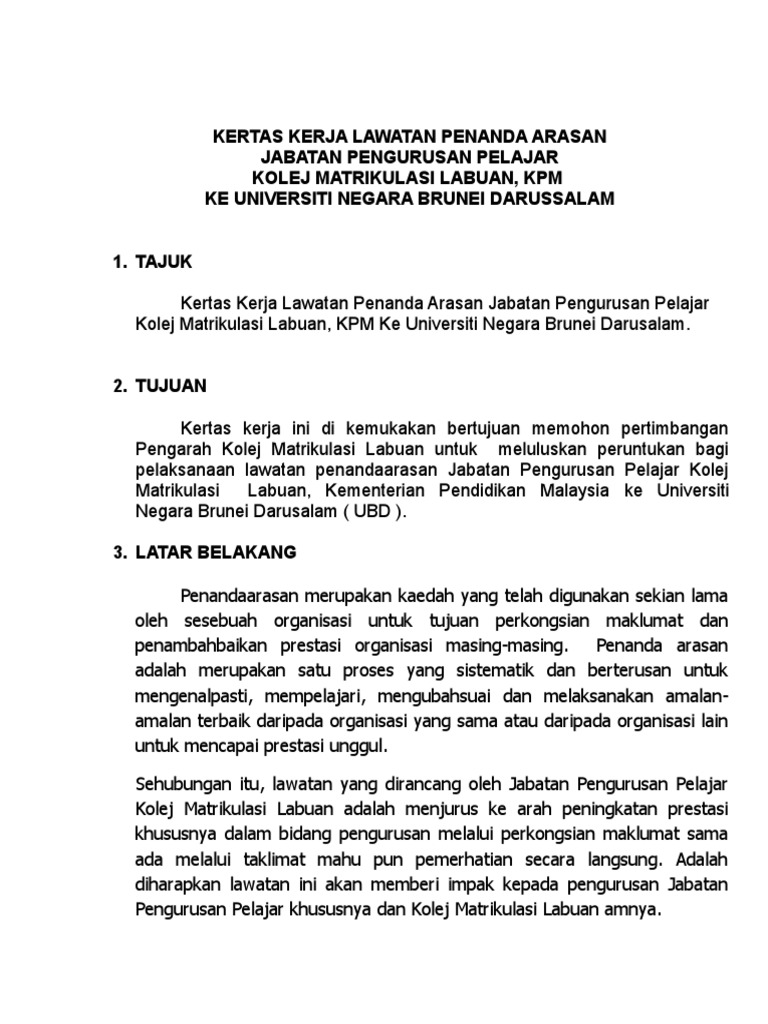 Kertas Kerja Lawatan Penanda Aras Doc