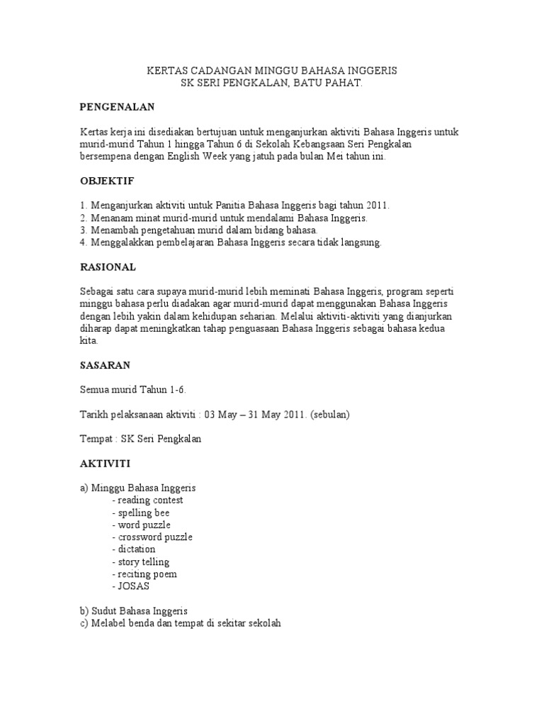 Kertas Cadangan Minggu Bahasa Inggeris