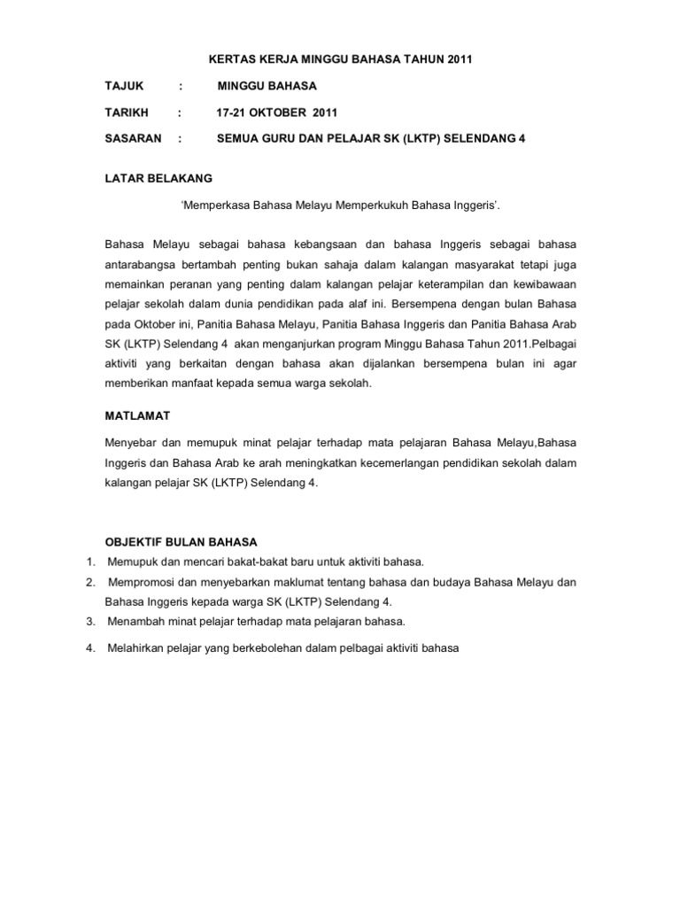 Kertas Kerja Minggu Bahasa