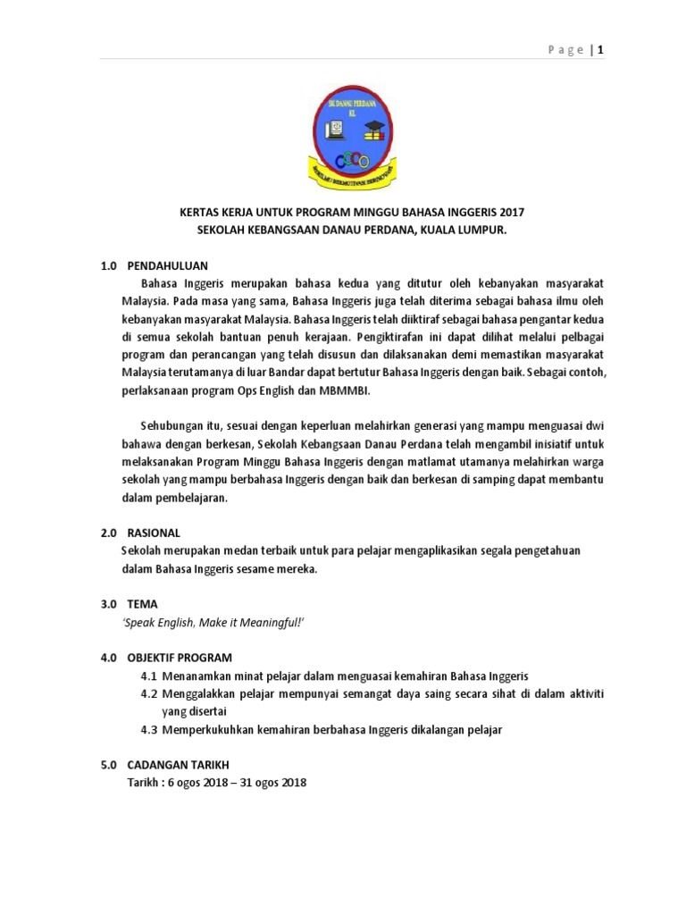 Kertas Kerja Program Minggu Bahasa Inggeris