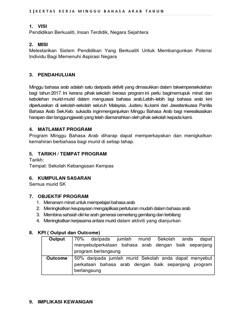 Kertas Kerja Program Minggu Bahasa Arab