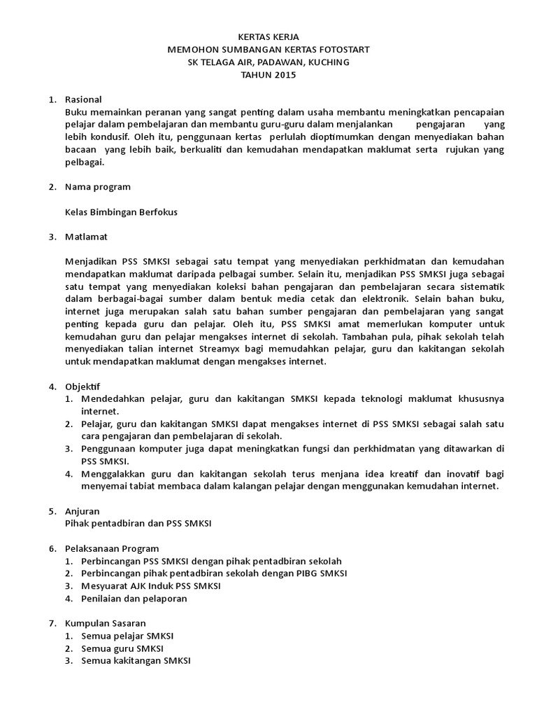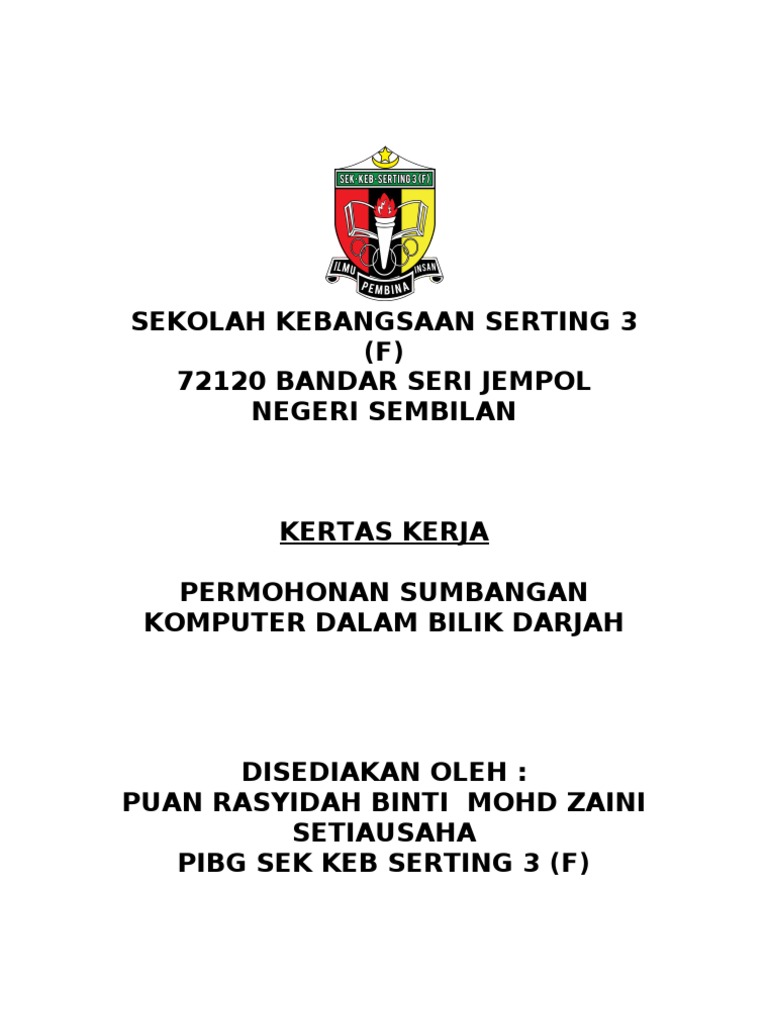 Kertas Cadangan Memohon Mesin Pencetak Untuk Panitia Sains Sk Kementah Fasehah Abdullah Academia Edu