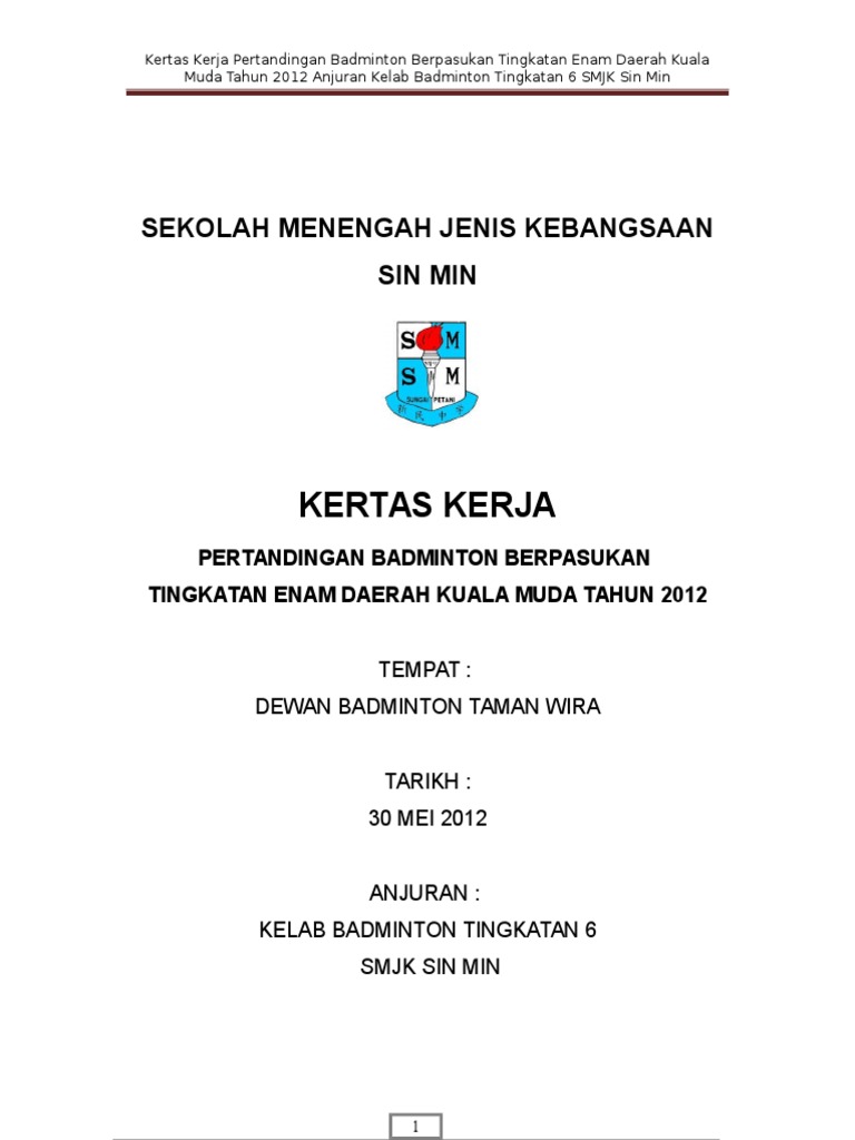Doc Kertas Kerja Kejohanan Badminton Smksn Abe Nor Academia Edu