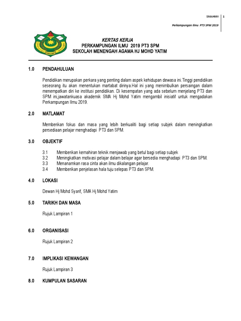 Perkampungan Ilmu Pt3 Spm 2019 Smahmy 1