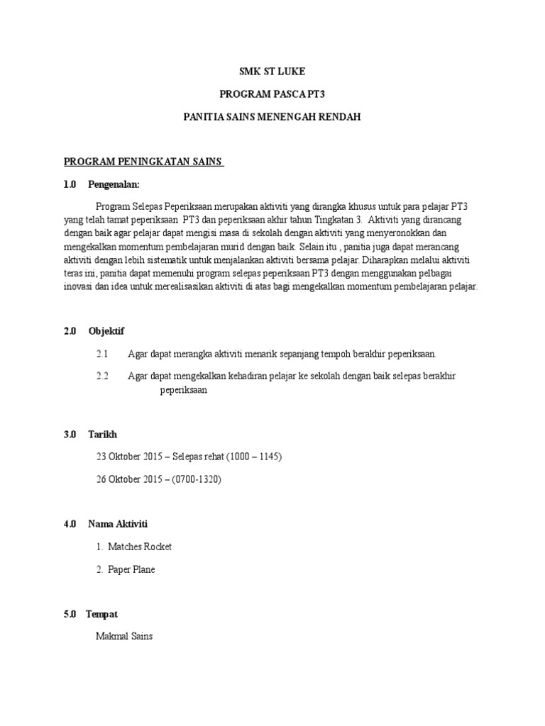 Kertas Kerja Program Selepas Peperiksaan Pt3 2016