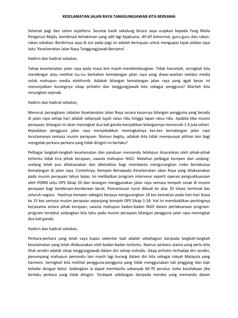 Keselamatan Di Jalan Raya Tanggungjawab Bersama