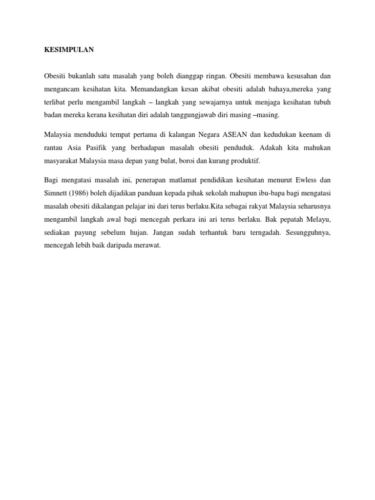 Kesimpulan Obesiti Di Kalangan Pelajar