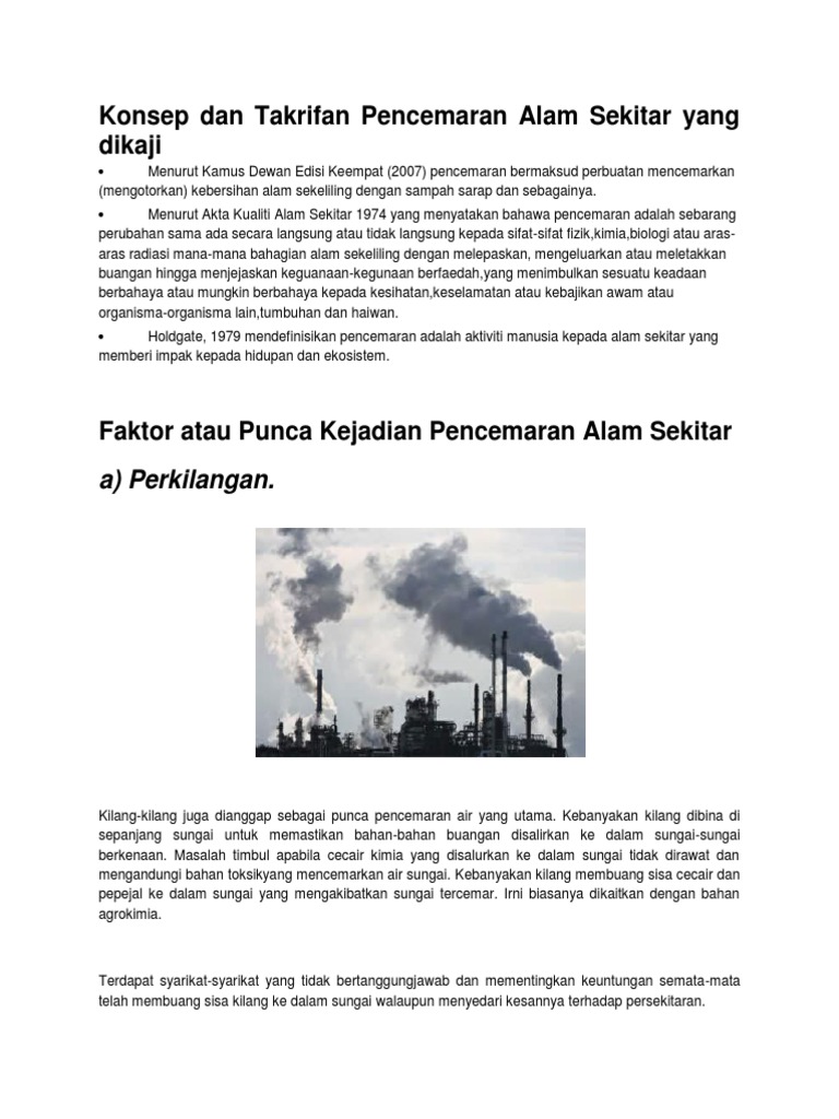 Konsep Dan Takrifan Pencemaran Alam Sekitar Yang Dikaji