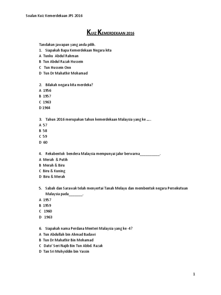 Soalan Kuiz Kemerdekaan Jps 2016 Pdf