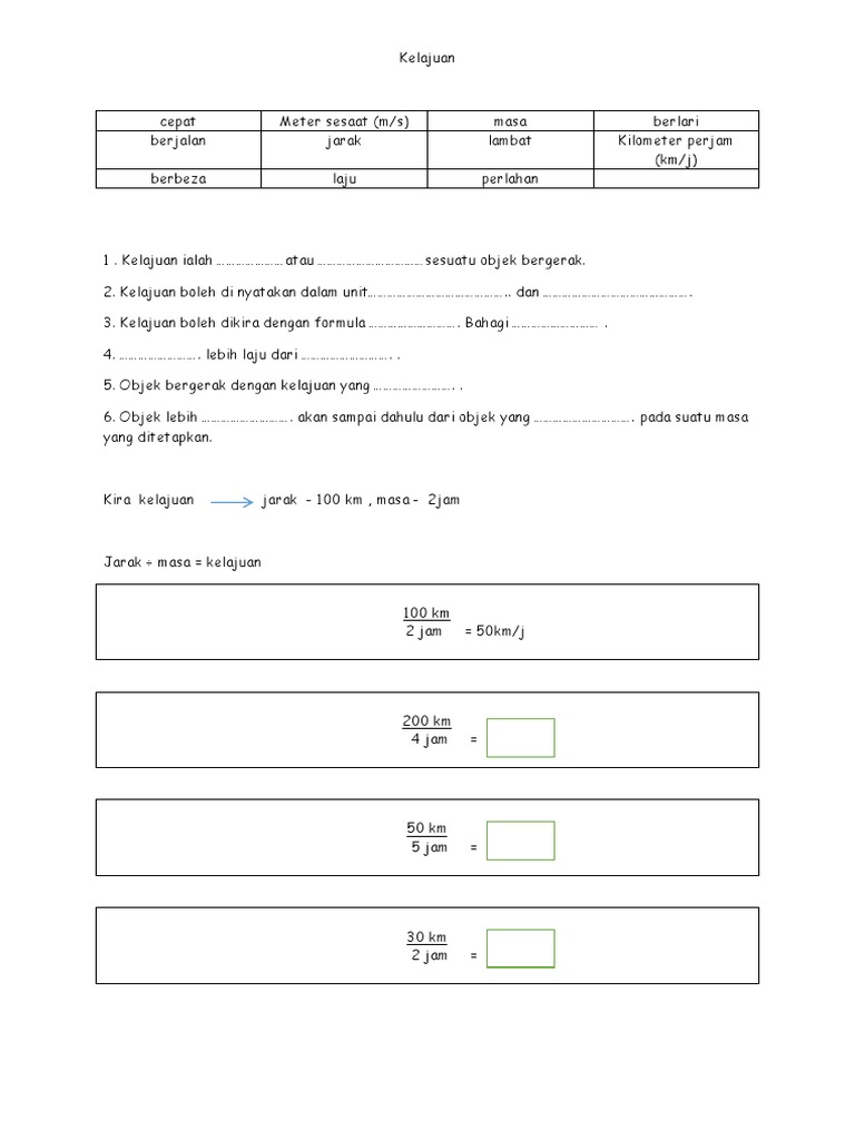 Sains Tahun 6 Mengira Kelajuan Sumber Pendidikan