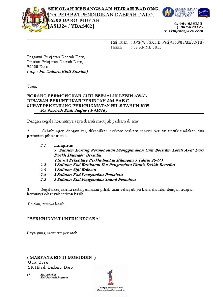Srt Cuti Bersalin Lebih Awal Aks Guru Copy