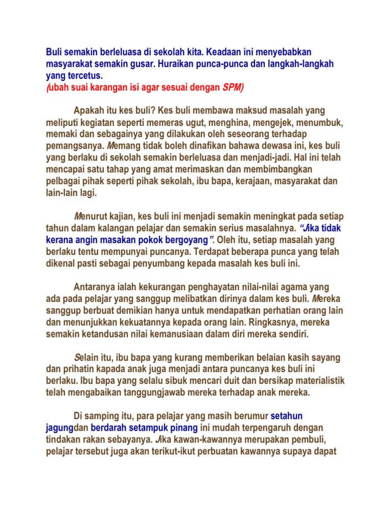 Cikgu Anelyza Spm Karangan 9 Punca Buli Dan Langkah Menanganinya