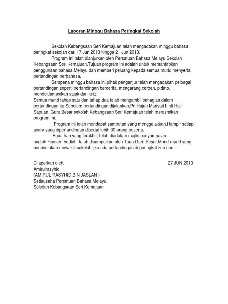 Laporan Minggu Bahasa Peringkat Sekolah