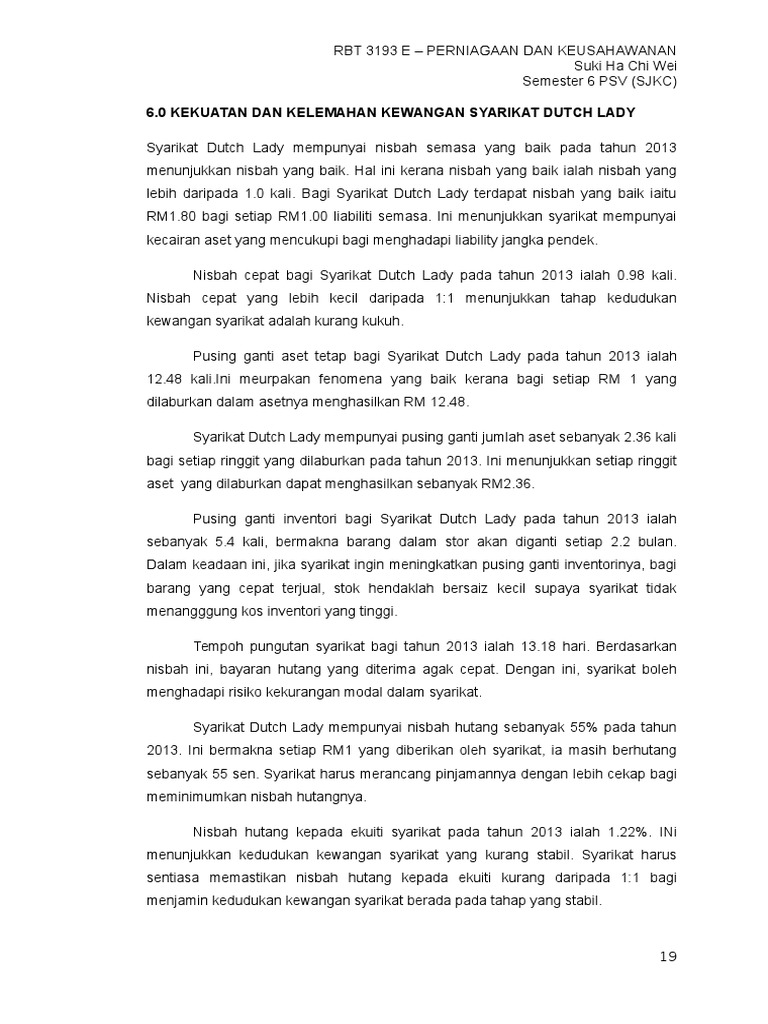 Pengkaji Mendapatkan Laporan Kewangan Syarikat Dutch Lady Malaysia Berhad Ini Course Hero
