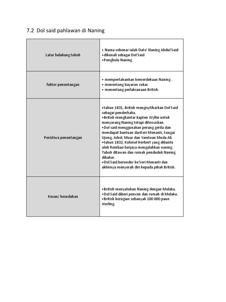 Sejarah Tingkatan Dua Dol Said Pahlawan Naning