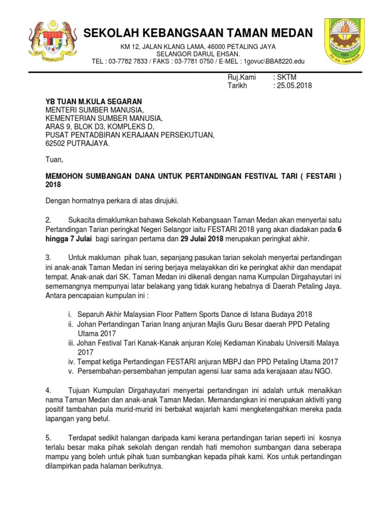 Surat Sponsor Kepada Menteri Sumber Manusia