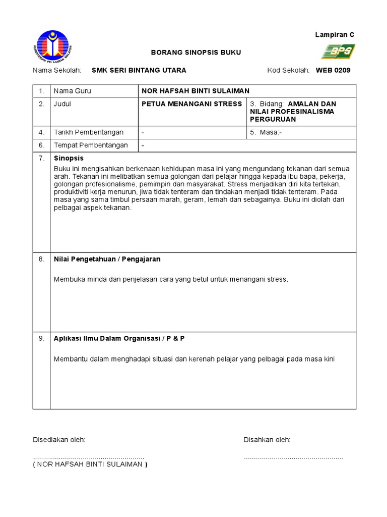 Borang Sinopsis Buku Untuk Guru