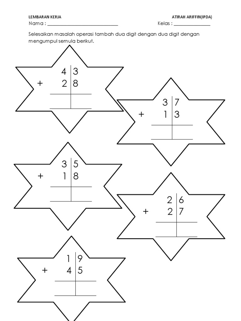 Lembaran Kerja Matematik Pendidikan Khas Selesaikan Operasi Tambah 1 Digit Kitpramenulis