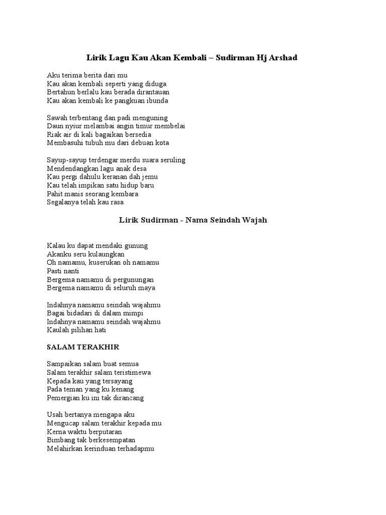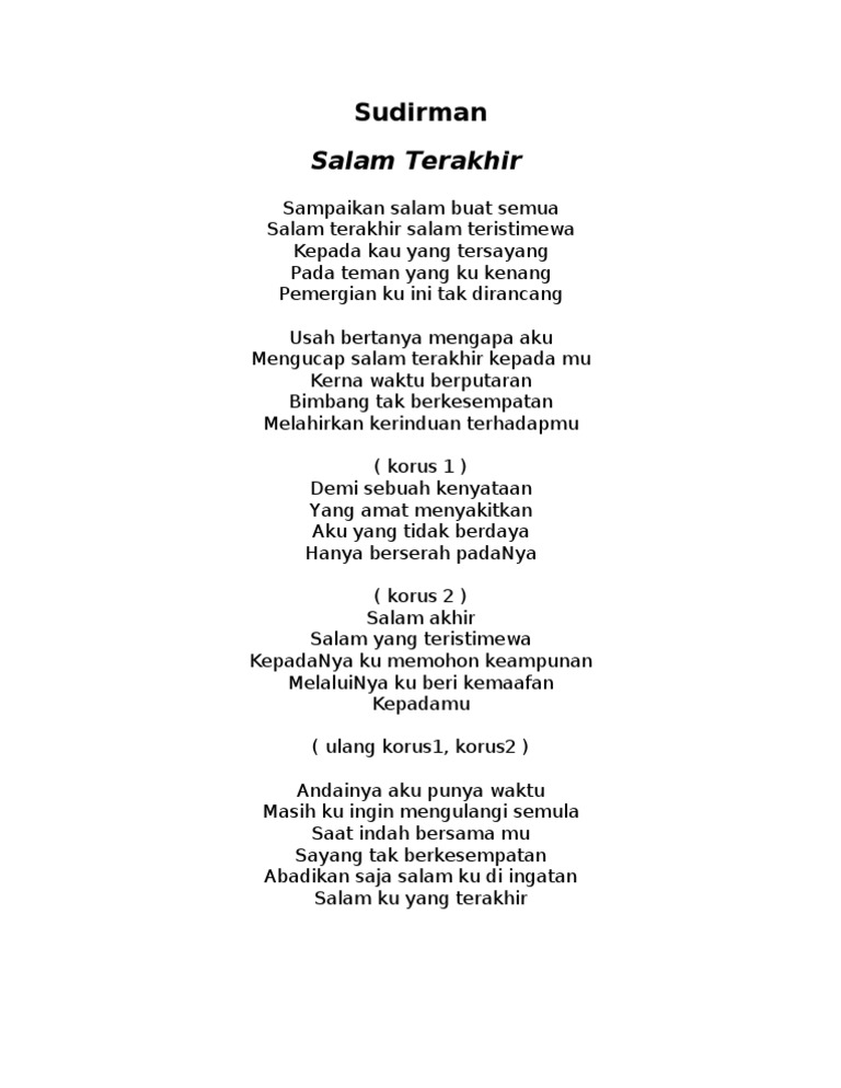 Lagu Sudirman Docx Salam Terakhir Sudirman Arshad Sampaikan Salam Buat Semua Salam Terakhir Salam Teristimewa Kepada Kau Yang Tersayang Pada Teman Course Hero