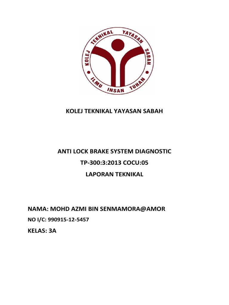 Kolej Teknikal Yayasan Sabah No I C 990915 12 5457