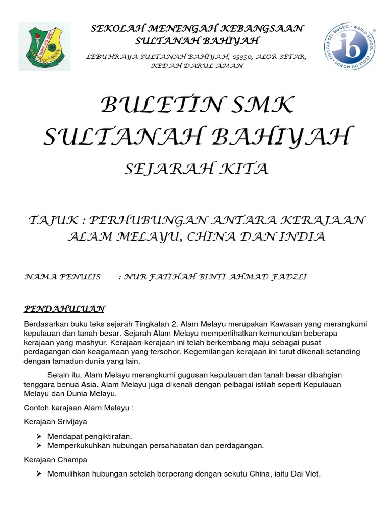 Buletin Smk Sultanah Bahiyah Sejarah Kita