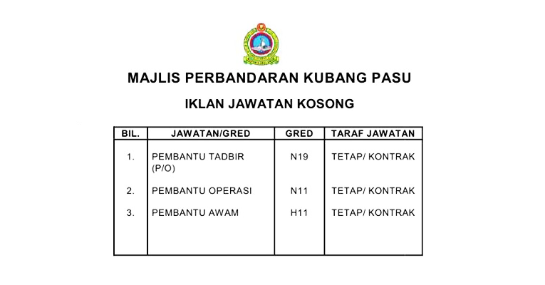 Jawatan Kosong Di Majlis Perbandaran Kubang Pasu Mpkp Jobcari Com Jawatan Kosong Terkini